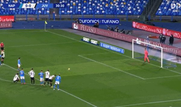 31'基耶利尼争顶时犯规,因西涅主罚点球命中,那不勒斯1-0领先尤文!
